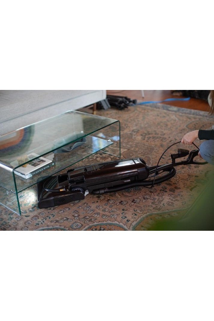 Designed to be a delight to use from handle to wheels. With switches at your fingertips, caster wheels for ultimate pivoting and smart tool configuration. Plus, it includes bright LED lights, an ultra-low profile nozzle and lays flat for cleaning under furniture. The R25 clean air machine pulls dirt from deep down to preserve the life of your carpet, yet its gentle on wood floors.