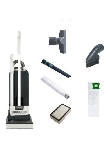 SEBO’s 300 mechanical cleans carpets, performs well on most hard floors, and has superb pet hair removal! The vacuum has a convenient cleaning wand and suction hose with an eight-foot reach and three on-board tools. The four-level manual height adjustment can be conveniently changed with the aid of the cleaning wand. In addition, the machine turns off automatically and gives user notification when a brush roller obstruction occurs, which protects the belts and carpets from damage. Furthermore, there is a user notification when a full bag or clog occurs.