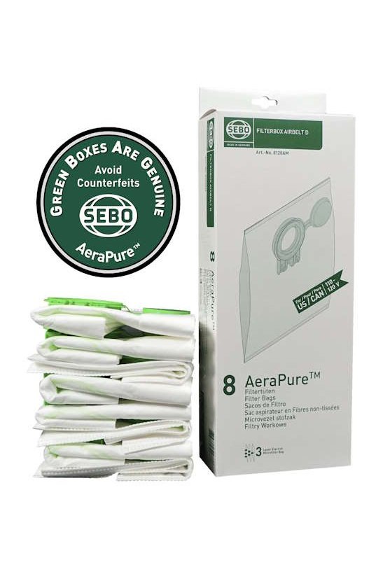 SEBO Airbelt D Ultra 3-Ply AeraPure Filter Bags - 8 Pack 8120AM