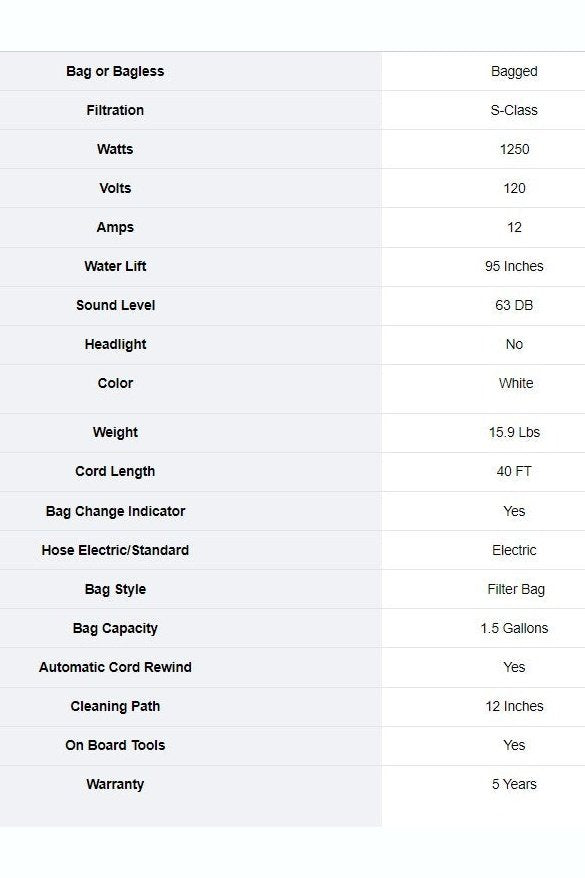A unique tapered suction hose, with a 320⁰ rotating canister connection, increases their airflow velocity, minimizes clogs, and improves maneuverability. They also feature excellent filtration, a push-button cord rewinder, and a soft-foam bumper that protects the vacuum, furniture, and walls from scuffs and scratches.
