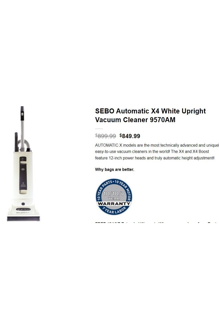 SEBO Automatic X4 White Upright Vacuum Cleaner 9570AM