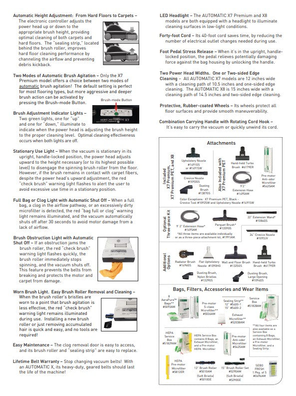 Automatic Height Adjustment An electronic controller automatically adjusts the powerhead's height to match the surface, ensuring optimal cleaning on both carpets and hard floors. A “sealing strip” behind the brush roller enhances hard floor cleaning by directing airflow and reducing debris kickback.